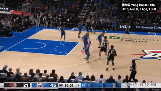 最后反正落后近40分了,开拓者让杨瀚森投压哨:三不沾。